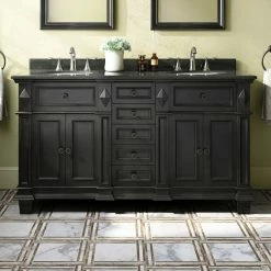 Ove Decors Essex Double Sink Bathroom Vanity with Countertop, Antique Black, 15VVA-ESSE60-031YJ