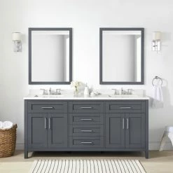 Ove Decors Tahoe 72 in. Double Sink Bathroom Vanity with Countertop, Dark Charcoal