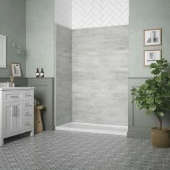 Ove Decors Misty Solid Surface Corner Shower Wall, 60 in. x 32 in.