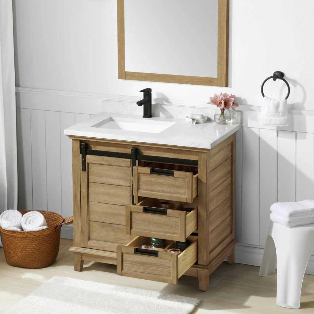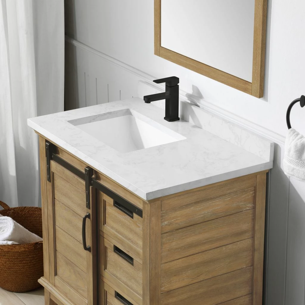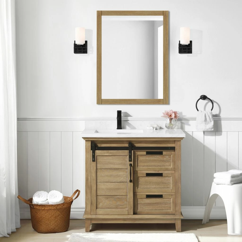 Ove Decors Edenderry 36 in. Single Sink Bathroom Barn Door Vanity with Countertop, Rustic Almond, 15VVAR-EDEN36-122EI