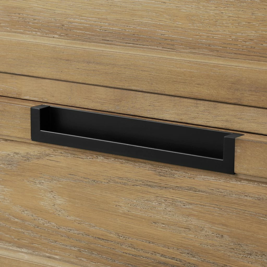 - Sliding barn door on quality engineered track hardware for easy access to your vanity storage