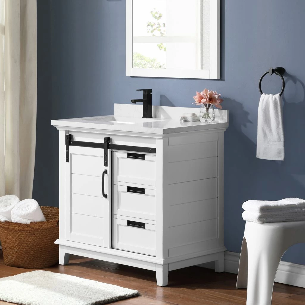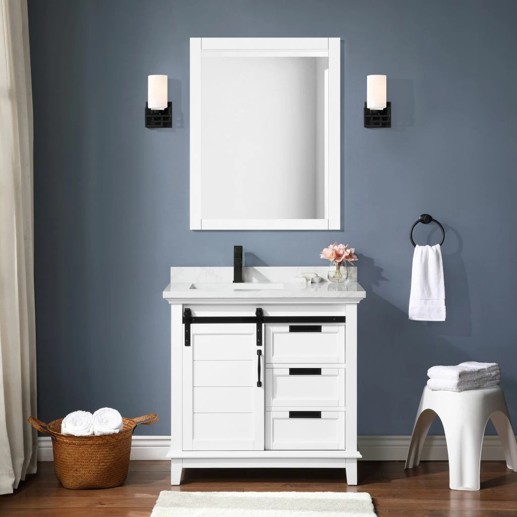 Ove Decors Edenderry 36 in. Single Sink Bathroom Barn Door Vanity with Countertop, White, 15VVAR-EDEN36-007EI