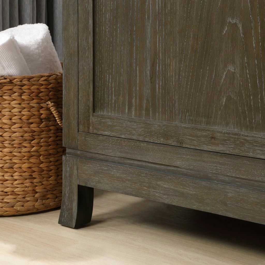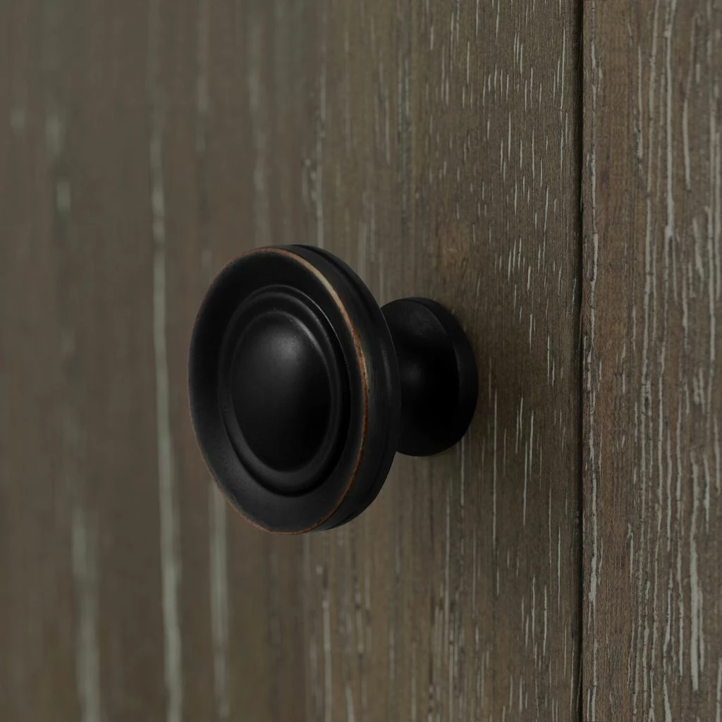 - Oil rubbed bronze hardware gives the vanity a touch of elegance
