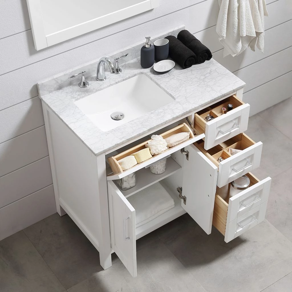- Size of the single sink vanity: 36 in.
