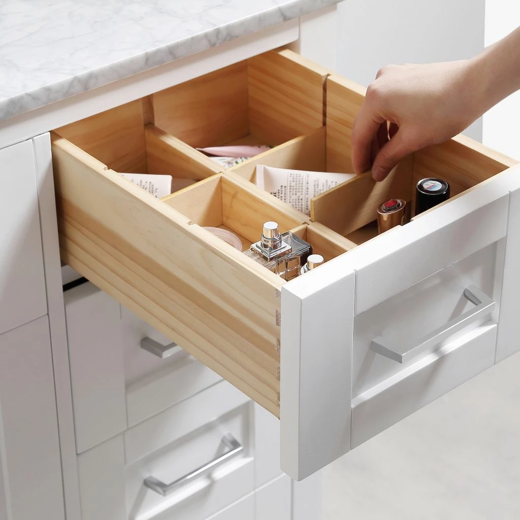 - Soft-close glides and hinges for quiet operation