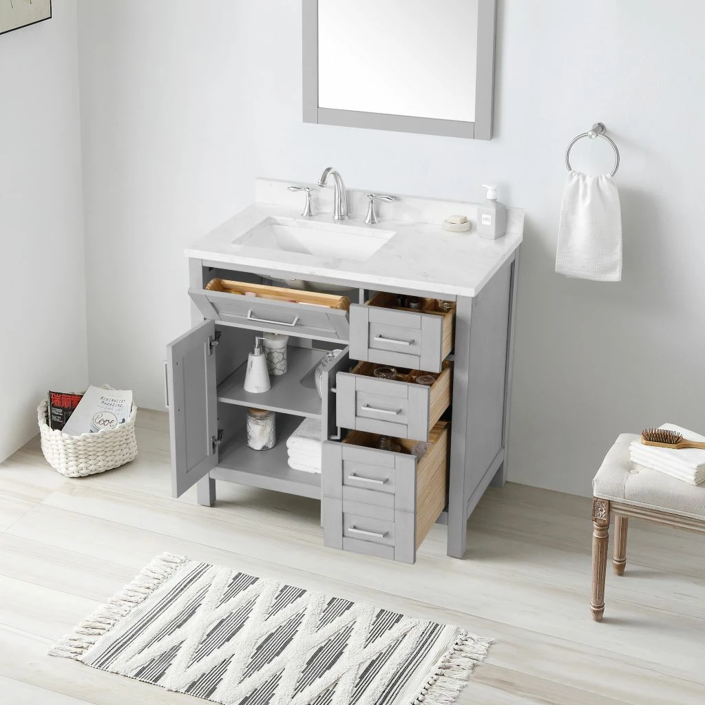 Ove Decors Tahoe VI 36 in. Single Sink Bathroom Vanity with Marble Countertop, Vintage Grey, 15VVA-TAH636-123FY