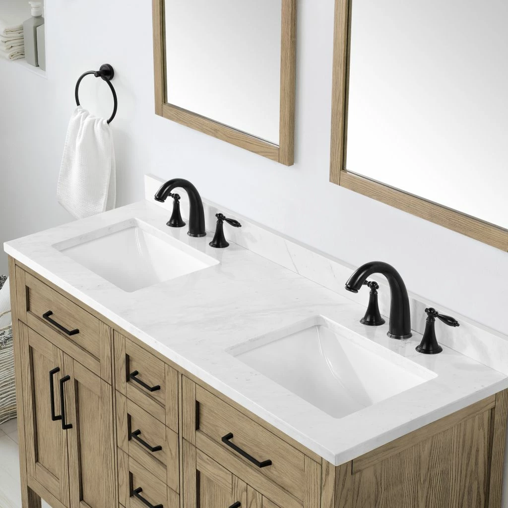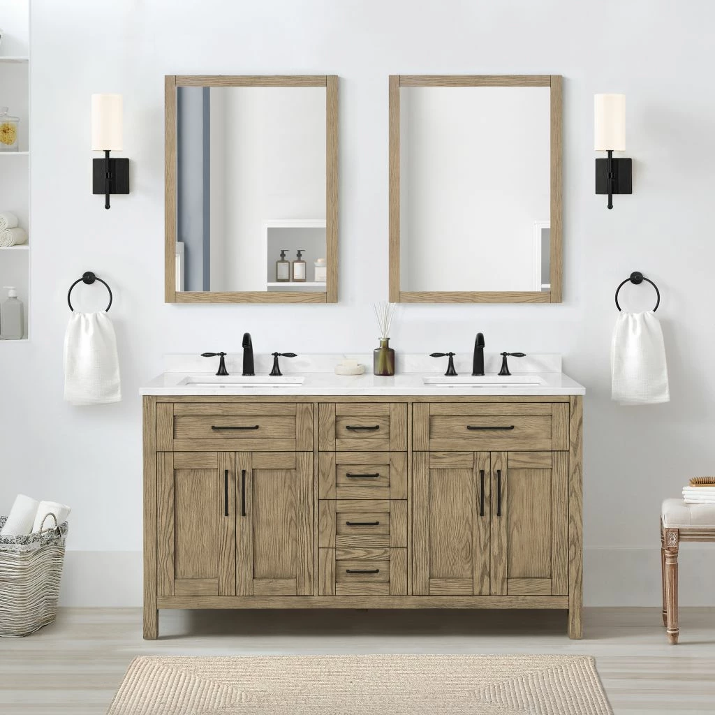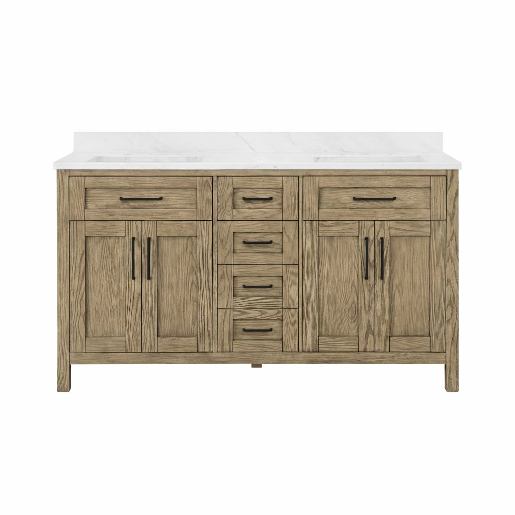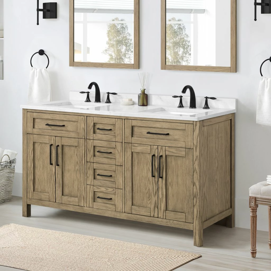Ove Decors Tahoe VI 60 in. Double Sink Bathroom Vanity Marble Countertop, Water Oak, 15VVA-TAH672-123FY