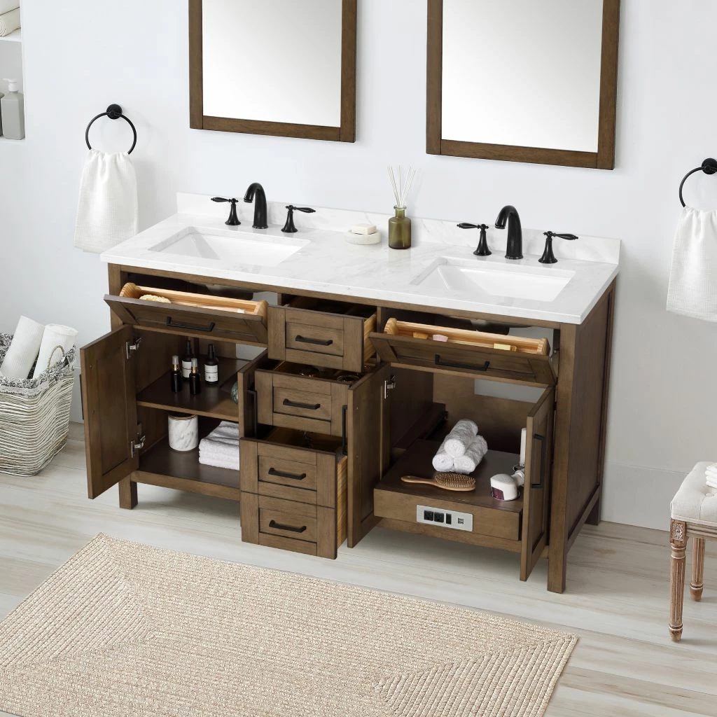 Ove Decors Tahoe VI 60 in. Double Sink Bathroom Vanity with Marble Countertop, Almond Latte, 15VVA-TAH660-059FY