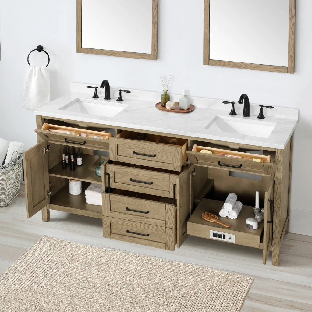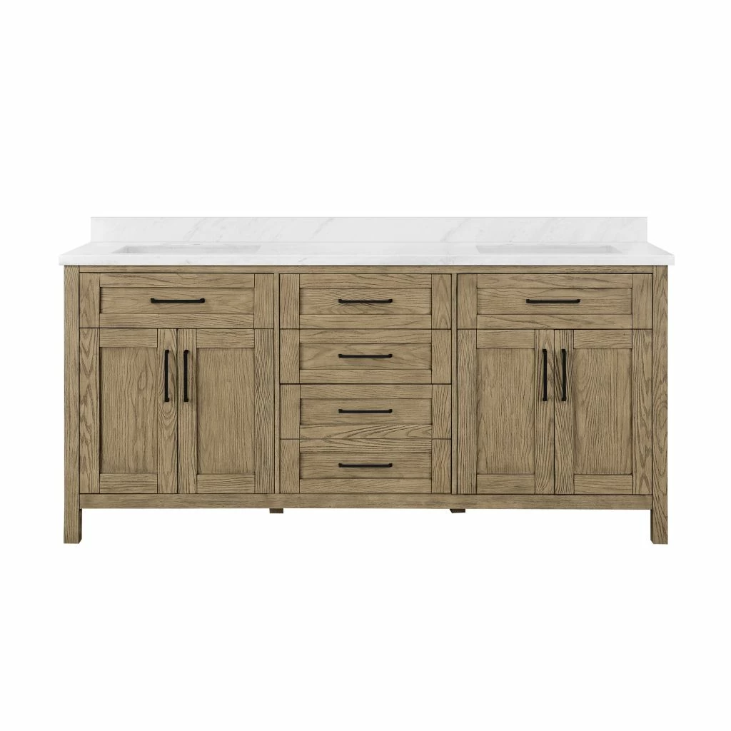 Ove Decors Tahoe VI 72 in. Double Sink Bathroom Vanity with Marble Countertop, Water Oak, 15VVA-TAH672-147FY