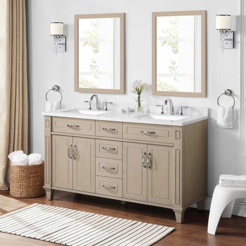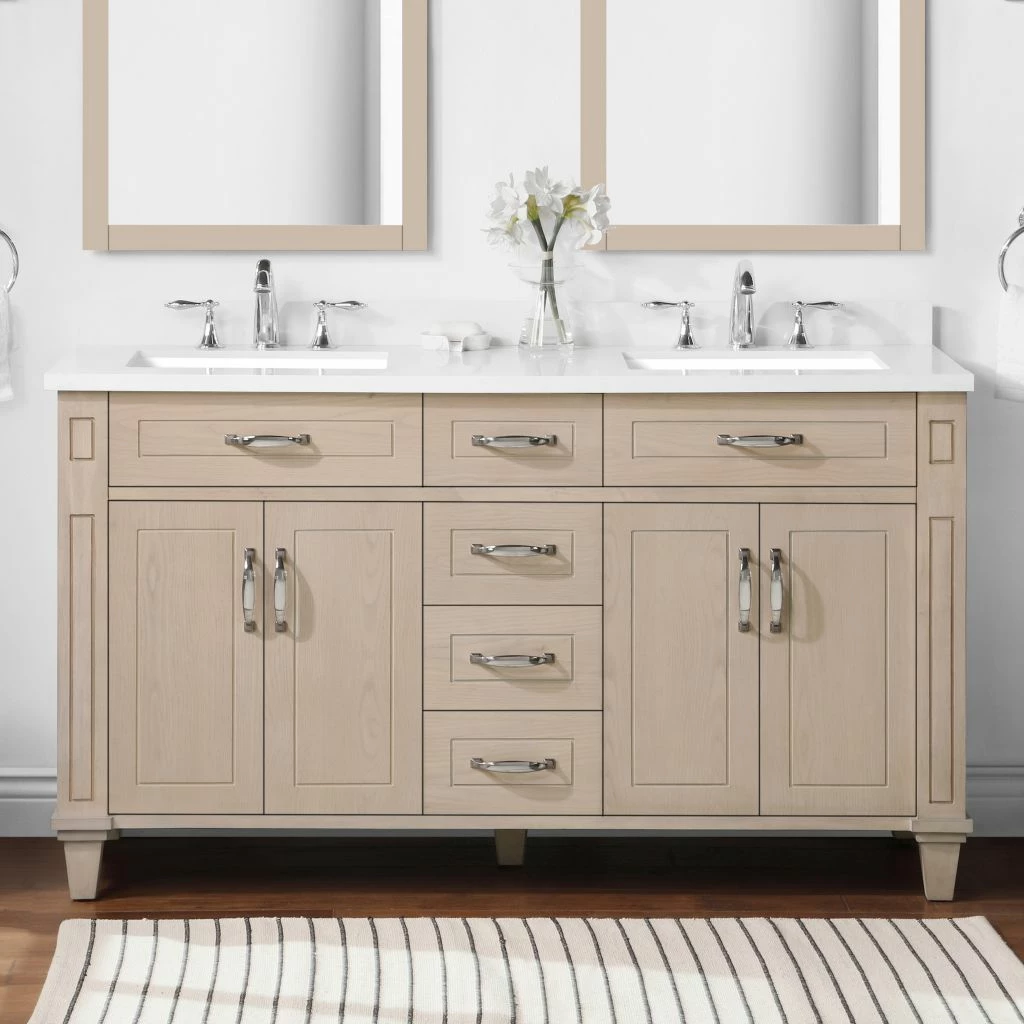 Ove Decors Thornfield Double Sink Vanity from Lily Pond Collection, 60 in., White Washed Maple, 15VVA-THOR60-118EI