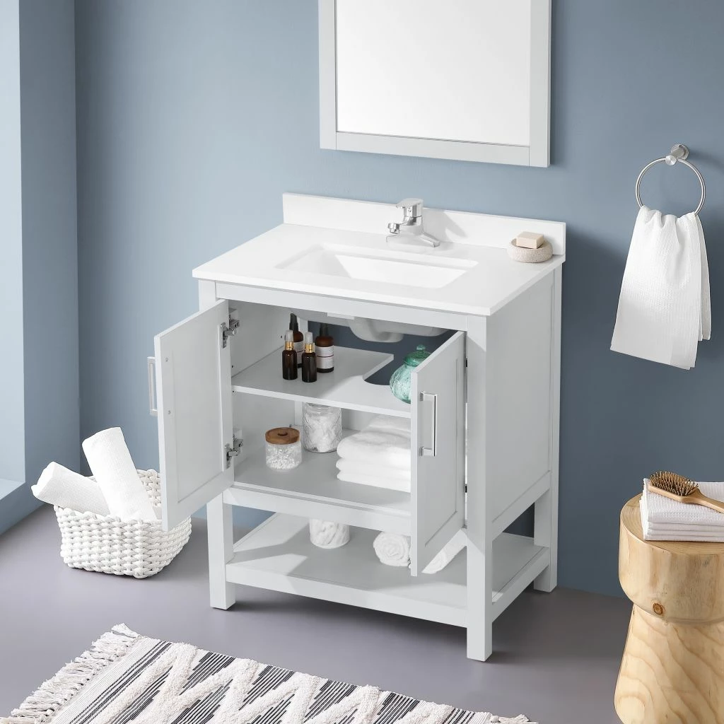 - Includes a 2-door cabinet with soft-closing concealed hinges