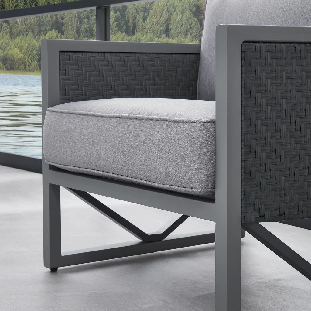 - Solid gray premium aluminum and wicker frame are UV-resistant for lasting durability