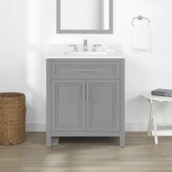 Ove Decors Kansas Single Sink Bathroom Vanity with Countertop, Dove Grey